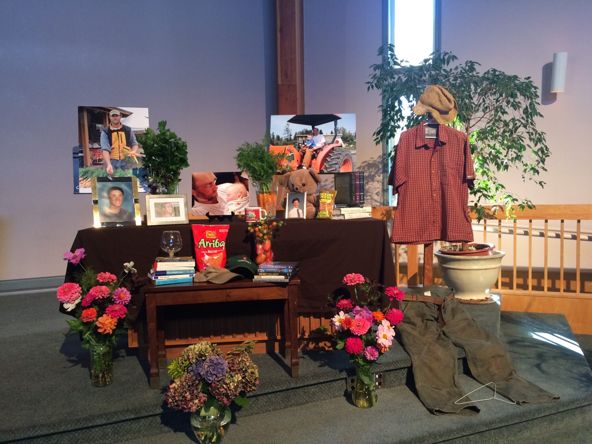 Our display at Brock’s memorial service really brought home the permanence of his death. (Photo from September 29, 2017.)