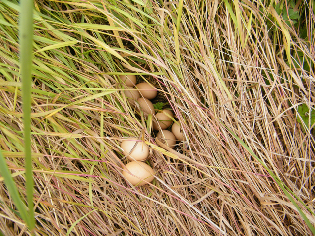 Exploring the pockets and crannies of our land, I also discovered the secret grass bed where our lone hen, Mandela, had been laying her eggs!