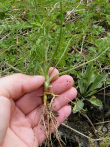 Hairy Cat’s Ear looks like a dandelion, but the leaves are hairy. The dried leaves smell like chocolate.