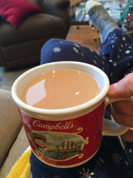 Our plans for tonight include hamburgers (Brock’s other favourite meal), with bacon-wrapped scallops to start. Hickory Sticks on the side. The mandatory angel food cake.