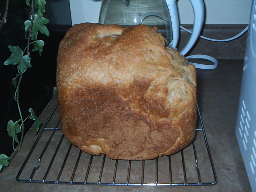 My first-ever loaf of homemade bread. (Made with a breadmaker, of course.)