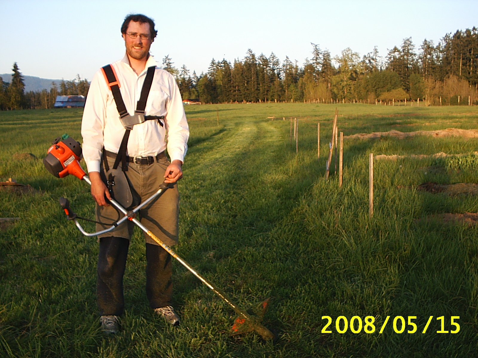 I posted a few more recent photos on Facebook yesterday. Something to watch for is Brock and my new wardrobe. I take credit for starting The Layered Look, but Brock has embraced it fully. My favourite outfit for a day on the farm is: warm socks, gumboots if outdoors, sweatpants (preferably my fleece pair, unless they’re already muddy or covered in seeds/burrs/straw), a tank top, one of my weird apron dresses with pockets, a bunch of hoodies/jackets, my toque, and some mitts or gloves. Brock wears warm socks, his gumboots, his sweatpants, shorts overtop, and many layers of shirts. Then his orange jacket and a toque or hat. These have become our (slovenly) uniforms. I heard the other day that what you wear to the farmer’s market is important. It’s a business, after all, and you want to present a professional, tidy image. We’ll have to dress up for the farmer’s markets. How peculiar. I think I’ll get T-shirts made (we love the phrase: “Keepin’ it Rural”) so we’ll look relatively put-together.